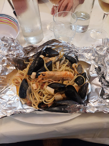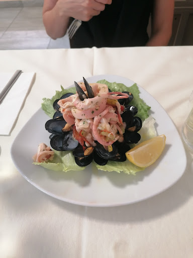 Read moreIl locale non si presenta benissimo, gli arredi sono un po' sciatti. Ci siamo accomodati al tavolo che ci hanno indicato, poco dopo ci hanno fatto alzare perché il tavolo era prenotato, ma cosa cambia !? Uno vale l'altro. Alla fine quel tavolo non è mai stato occupato .. Ci sediamo e veniamo attaccati da una famiglia di maggiolini enormi probabilmente attirati dai lampadari sopra il tavolo... cambiamo nuovamente tavolo. Finalmente ordiniamo: tre antipasti, un primo, un secondo e una pizza. La pizza arriva mezz'ora prima del resto, il secondo prima dell antipasto, il primo assieme all antipasto. Il mio antipasto mai pervenuto, la cameriera anziché scusarsi ha girato la frittata dicendo che io non avevo sentito che il pesce era terminato... Mah! Tutto sommato il cibo non era male anche se la maggior parte del pesce era congelato. Prendiamo inoltre due tiramisù, un amaro e un caffè. Speso 100 euro in 4! Mi sembra esagerato, visti la location che non è massimo, il servizio pessimo e il cibo non fresco. Ha una buona base ma c'è da...
