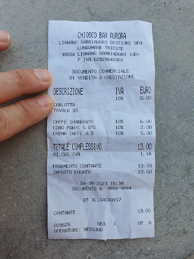Read morePessima esperienza, ci sediamo in 6 per l'aperitivo nel dehor fronte spiaggia. Girano due camerieri che ci guardano ma non si avvicinano, probabilmente pensiamo di dover andare dentro ad ordinare. Chiedo e una ragazza mi risponde che arriva il cameriere subito segnandomi un uomo che entra ed esce dal dehor 3 volte senza far nulla e senza avvicinarsi a noi, allora richiedo se possiamo ordinare. Lei gentilissima, ma non ho capito perchè non poteva prendere un pezzo di carta e prendere lei l'ordine obiettivamente era li in piedi a far nulla! Comunque sollecita il cameriere e lui le risponde "bè che aspettino e non rompano i c...!" A quelle parole sentite fino al tavolo ci alziamo per andare via e solo li lui si avvicina a noi e ci dice "se non avete pazienza 2 min andatevene!" ....Scusami??? Gli faccio notare che erano 10 min che aspettavamo, che il bar era mezzo vuoto e che i tavoli che erano già li erano tutti serviti da prima che arrivassimo! Bello mio se a Pasquetta sei in crisi con 5 tavoli a Ferragosto che fai?? Ti butti in mare per la disperazione?... Comunque non lo consiglio assolutamente, non abbiamo potuto assaggiare nulla ma abbiamo assaggiato la loro...