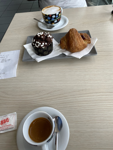 Read moreLa gestione deve essere cambiata da pochi anni. Abito qui vicino e sono almeno 20 anni che ogni tanto ci vado a fare colazione. Ancora prima della ristrutturazione. Ci sono luci e ombre. Il personale è molto cortese (ad occhio, anzi ad orecchio, hanno un accento dell'est europeo) e garbato, purtroppo però se ti siedi e attendi di essere servito, diventi "invisibile" e questo secondo me è una specie di maledizione che aleggia sul locale, in quanto questo problema c'è sempre stato, a prescindere da chi l'ha gestito. Ho sempre aspettato almeno 10 minuti, addirittura una volta, dopo 15 minuti che nessuno mi considerava, me ne sono andato, e non c'era il pienone. In compenso, se hai la fortuna di essere servito in tempi congrui, il cappuccino è molto buono. Non si può dire la stessa cosa della brioche, che come si evince dalla foto è mal lievitata, con il classico "bucone" e la marmellata sui lati: non ci siamo. Il problema però potrebbe essere dovuto al fatto che hanno le brioche pronte e le riempiono a richiesta: un'idea carina, ma a rimetterci è di solito la qualità. Sicuramente ci tornerò per verificare eventuali miglioramenti, ma al momento non lo posso consigliare per...