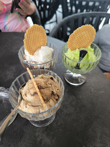Read moreDas Eis ist ausgezeichnet, große Auswahl und große Kugeln zu einem Fairen Preis. Haben uns hier jeden Tag ein Eis geholt, das wir unser Hotel gleich gegenüber hatten. Grund für meine schlechte Bewertung ist allerdings, dass z.b. gestern (Dienstag) in der Nacht eine Live-Band gespielt hat, welche für diese Gegend viel zu laut war für die Uhrzeit war! (Die Band hat erst um 21.30 Uhr begonnen zu spielen und kurz vor Mitternacht aufgehört). Speziell in dieser Gegend sind sehr viele Apartments mit Familien, wo auch kleine Kinder oder gar Babys dabei sind. Wir haben uns bewusst eines der Hotels in dieser Gegend gesucht, um abseits der Fußgänger ruhiger zu haben, speziell in der Nacht. Das hier dann mitten in der Nacht eine Live-Band mit verstärkter Musikanlage über 2 Stunden lang so laut spielt, dass bei uns gegenüber die Gläser im Schrank klirrten ist einfach inakzeptabel. Ich bin selber Musiker und habe viel Verständnis für Live Musik jeglicher Art, aber das war einfach zu viel. Wenn hier eine kleinere Gruppierung unplugged spielt und/oder auch früher anfängt und somit früher wieder aufhört sagt auch keiner was. Hier können weder die Hotels in der Gegend, noch die angestellte Band und am wenigsten alle Familien die ihr Kinder schlafen legen wollten was dafür, hier sollte künftig eindeutig der Betreiber des Cafes mehr Verständnis zeigen und auf die Nachbarn...
