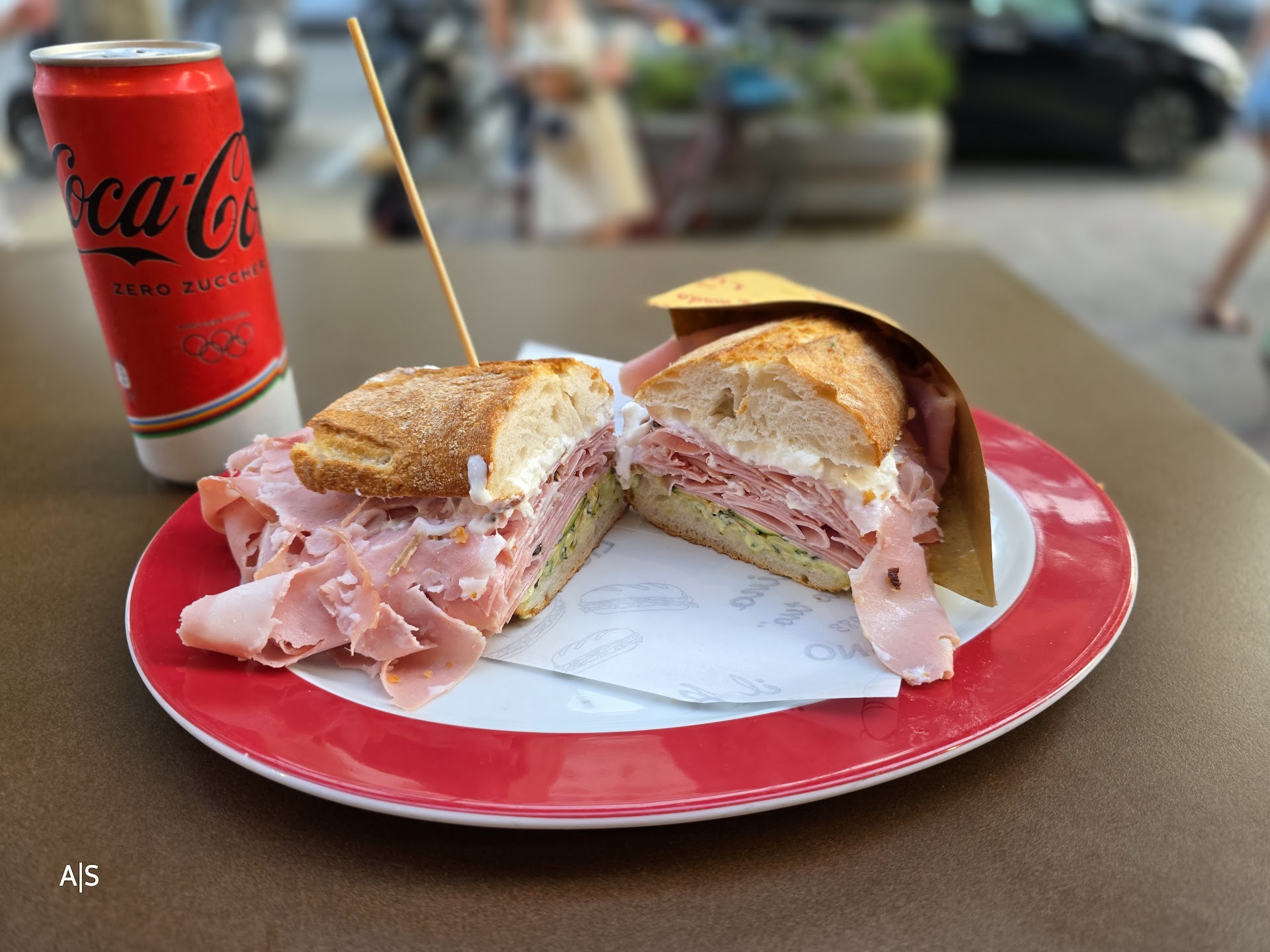 Le materie prime sono di buona qualità: il pane è ottimo, fresco, fragrante, e viene farcito in maniera abbondante con affettati, formaggi e salse che si fanno apprezzare per gusto e freschezza. Il risultato è un panino semplice ma davvero buono, ben fatto, saporito e saziante.
