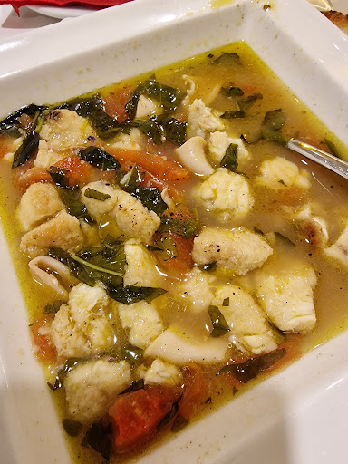 Cozze as a starter for two persons - very delicious, tomato- white wine-garlic sauce... after we had grilled calamari with polenta - Perfect!!!, and Calamaretti (which is a ring shape pasta, al dente of course!) con polpo (octopus)..... Amazing!!!