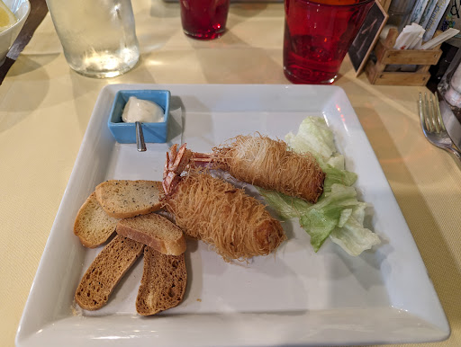 Read moreHo cenato il 19 Agosto con la mia famiglia. Il locale è effettivamente arredato a modi trattoria ma la qualità dei piatti è da ristorante. Noi abbiamo cenato in terrazza la quale da direttamente sulla strada. Se questo da fastidio meglio chiedere un tavolo all'interno. Il personale è gentile ed i tempi d'attesa sono stati adeguati considerando che il locale era pieno. I piatti sono ben presentati e le porzioni adeguate. I sapori sono ben bilanciati. Ho chiesto i tagliolini all'astice e mi hanno avvisato che il prezzo sarebbe stato più alto dovuto al fatto che in quel periodo l'astice era Italiano e non estero. L'ho preso ugualmente e non me ne sono pentito. Forse gli spaghetti alle vongole erano leggermente amari. I dolci sono squisiti. Il costo è da ristorante di pesce a tutti gli effetti per cui non fatevi ingannare dal nome. Consigliato a chi ama il pesce e guarda la sostanza senza esigere il risorante...