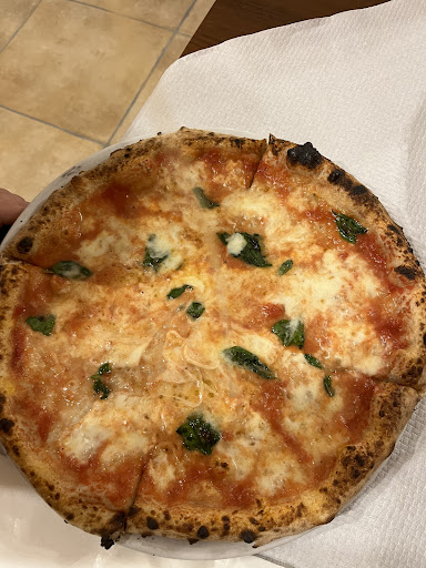 Ambiente del tutto casalingo e molto accogliente con posteggio privato dedicato ai clienti. Il personale è accogliente, preparato e mette simpatia e professionalità durante il servizio. Il cibo ottimo. La pizza è con bordo alto e impasto centrale basso e molto leggero. I prodotti utilizzati di qualità. Se volete mangiare una buona pizza napoletana dovete provare...