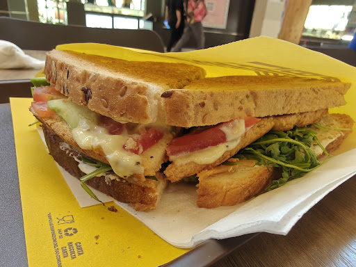 Yes, this place is just a sandwich shop located in a mall. Big deal, right? Well first I’ll bore you with the details of why they earned 3 stars for the usual stuff: Food: great—Do not be mistaken, these sandwiches are made for giants. They’re huge. It’s so hard to find a real American breakfast sandwich in Italy so it was a real treat to indulge in such bacon eggery! Price: really good value when you consider the portions & quality. Better than expected. Place: small fast food style restaurant with seating that spills out into the mall area. Sundays apparently they’re extra busy because some of the other places are closed. Now this is where it gets interesting & they earn an extra 2 stars. Service: I didn’t get the name of the gentleman that happened to be working that day but I wouldn’t be surprised if it was One Man Band Sandwich Shop Machine. This guy was running the whole restaurant alone during lunch time on a weekend. Not only that, he was killing it! He tended to the counter, made the food, & maintained the dining room clean, observing COVID rules. All while sporting a positive attitude & smile even when customers made ridiculous requests. As an F&B professional myself I sure love to notice the bad things people in restaurants do but this guy deserves a prize AND some extra help, please. Get this guy some backup before his...