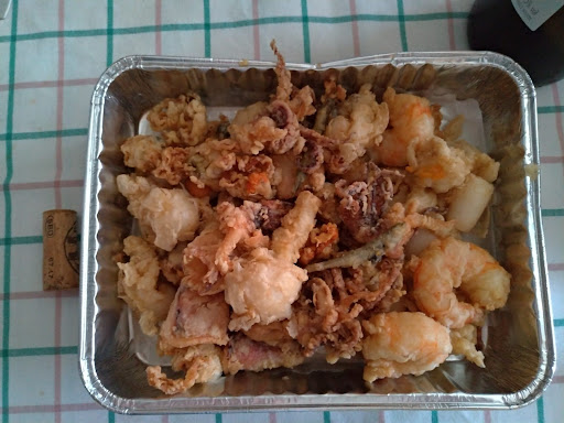 Premetto che conosco il locale dagli albori quanto Checco friggeva dietro al bar ed ho visto e vissuto tutte le evoluzioni che si sono succedute negli anni. Sabato sera abbiamo voluto dargli ennesima opportunità ho prenotato una porzione per 2 persone di pesce fritto da asporto! Di solito il pesce, quando pronto, veniva pesato e poi si procedeva al pagamento naturalmente in base al peso, questa volta mi è stato subito richiesto il pagamento di ben 24€ (le altre volte 2 porzioni si aggiravano intorno alle 20/22 euro secondo il peso appunto) dopo 5 minuti di attesa il pesce è arrivato dalla cucina. Giunto a casa apro la confezione e trovo la porzione in foto!!! 4 gamberi di numero!!! qualche seppia qualche calamaretto e qualche canestrello…. Per 24 euro!!! Giudicate voi…. Siamo rimasti con fame!!! Ora dico, capisco che vogliano cercare di atteggiarsi a ristorante elegante (che tra l’altro di elegante non c’è niente li dentro) ma approfittarsi così aumentando i prezzi e diminuendo le porzioni no, questa volta ci metto una pietra sopra, basta i miei soldi non li avrete più! L’unico mio rammarico è stato quello di non aver pensato di pesare il pesce giusto per sapere quanto l’avevo pagato al kg. Con dispiacere vi dico che per me possono anche chiudere...