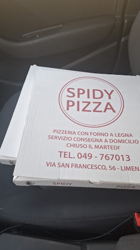 A lungo ho pensato che le migliori pizze di Limena (quantomeno per asporto) fossero quelle del Turbo Pizza, ma ho avuto modo di constatare che anche lo Spidy si difende senz'altro bene in questo senso. Ho preso un paio di pizze 🍕 qualche tempo fa e devo dire che ne sono rimasto soddisfatto 👍. Ampia scelta nel listino 📋, che contempla peraltro anche bruschette e calzoni. Successivamente sono tornato anche in altre occasioni trovandomi sempre bene. Cortesi e disponibili i membri dello staff 🧑🏻👩🏻, nella norma i tempi d'attesa. Manca un vero e proprio parcheggio 🅿️, ma si può lasciare l'auto 🚘 presso una piccola piazzola nelle immediate vicinanze. CONSIGLIATO 👍.