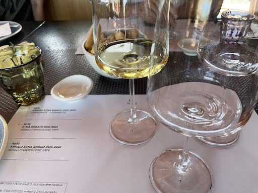 Una splendida serata. Sono abituato a calibrare le mie aspettative in funzione del luogo dove mi trovo e devo dire che il livello dei piatti proposti e' eccellente. Tutto e' preparato con amore, in modo maniacale. I menu' gourmet sono un'esperianza culinaria, non e' una semplice cena, ma molto di piu'. La tagliatella di carrubba ed il coniglio porchettato mi hanno veramente colpito. Il vino proposto, un rosato di produzione propria, un Neri Etna Rosato, da nerello mascalese con leggeri sentori di frutti rossi, gradevole acidita', ha ben accompagnato la serata. Il servizio invece, mi spiace molto doverlo dire, non e' stato sempre ai livelli dei piatti proposti, nulla di drammatico ci mancherebbe, ma alcune cose vanno dette. Sono a mio parere tre le note stonate; il menu gourmet prevede il classico mini aperitivo di benvenuto, sarebbe assolutamente gradito e premuroso servire anche un semplicissimo prosecco con questa portata. Se non vuoi farlo, liberissimo, non lasciarmi con il piatto sotto il naso 10 minuti ad aspettare il vino che ho ordinato, non e' piacevole. La squisita piccola pasticceria servita alla fine andrebbe anch'essa accompagnata da liquore, un amaro, un caffe'..anche qui, se non vuoi offrirlo, vieni almeno a chiedere se lo vorrei. Di un'esperienza le persone ricordano sempre come e' iniziata e come e' finita, le parti centrali svaniscono nella memoria. Detto questo mi sento di consigliarlo e sicuramente...