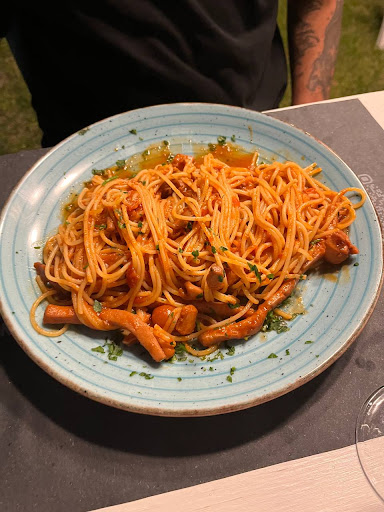 Read moreArriviamo al ristorante, cercando di comprendere come fosse la suddivisione La Forgia/9852, scoprendo poi da Maurizio stesso, che ormai fosse lo stesso ristorante. Maurizio è un ottimo oste. Se dai lui la possibilità ti racconta qualsiasi cosa del posto dove lavora, della sua vita, e del suo cibo. Si siede con noi e ci racconta dei suoi piatti, del suo locale Ci intrattiene, corre come un matto, fa a destra e sinistra, andando anche a invadere forse un filo gli altri camerieri che non gli stanno dietro coi ritmi Ci porta il suo pane preferito, papavero, curcuma, e altri due spezie che spero possa perdonarmi se non ricordo. L'ambiente è amichevole, è una bottega sul mare che porta la realtà non globalizzata ma moderna di vulcano. Grandissimo plauso ai ragazzi in cucina, che sfornano due piatti di pasta pazzeschi, con degli ingredienti (soprattutto i totani) rispettati alla follia, non stracotti, morbidi, teneri e dolci. Dopo una cena in un ambiente da taverna marittima all'aperto, Maurizio ci tiene a farci provare quelli che, lui ci tiene a dire, sono dei sesamini, ma tipici eoliani, al vino cotto, uvette e sesamo, accompagnati da una buona Malvasia.