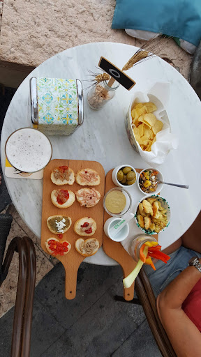 Read moreSurprise yourself in the late afternoon when you just order a beer and a lemon granita and the staff also bring you a bowl of olives some nuts crisps and some mini pizzas or another little snack on the house. Look at the photos. It's really relaxing to sit and watch dive boats go in and out with a nice cappuccino, and see some of the local children catching an octopus from the harbour in front of you. They occasionally they have live music here. Nice views, nice staff and you can write home about the...