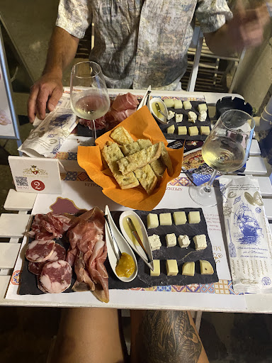 Read moreProbabilmente scegliendo la formula aperitivo a 7 euro il giudizio potrebbe essere sufficiente. Siccome abbiamo preso due calici a 7 euro con tagliere in aggiunta non posso assolutamente dirmi soddisfatta: il tagliere proposto a 25 euro non vale lontamente tale cifra. Salame e formaggi accompagnati da scodellini con sott'oli di discreta qualitá. Il vino non era eccezionale e soprattutto non ci é stato né spiegato né fatto assaggiare, cosa che ci si aspetterebbe da enoteca direttamente legata al prpduttore. In cassa, manifestata la delusione per il tagliere, mi é stato risposto che siamo a Vulcano. Non consiglio assolutamente la formula...