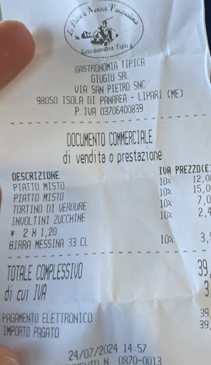 Read moreMetto una stella solo perché è stato comodo mangiare un po' di pasta anche se troppo troppo al dente e non essere spennata dai prezzi altissimi li a Panarea Ma il personale è scortese da morire,abbiamo trovato una donna li fuori seduta che non voleva proprio saperne di lavorare e quando le abbiamo chiesto di poter pranzare ci ha risposto scocciata"PRANZARE È UNA PAROLA GROSSA, QUI ABBIAMO SOLO ARANCINI E PIZZETTE!"io le ho risposto che avevo letto dalle recensioni diversamente e lei ci sono anche primi e secondi ma non è un ristorante!ma chi ha detto che cercavo un ristorante???! Insomma non aveva voglia di lavorare e voleva che ce ne andassimo ma allora chiudi direttamente! Sono rimasta soltanto perché non sapevo dove altro andare ma L ACCOGLIENZA È...