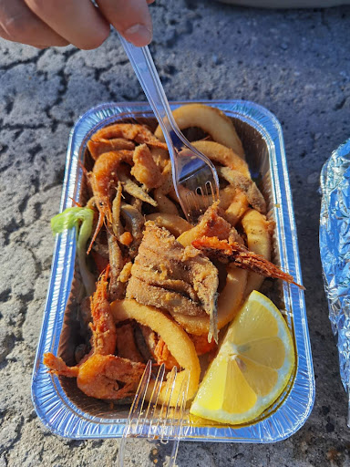 -- la frittura l'ho lasciata quasi intatta nel piatto, della grigliata di pesce abbiamo mangiato solo la fetta di pesce spada e un gambero, il giusto per renderci conto che era meglio non continuare. Mi dispiace, ma ci sono stata eccome nei ristoranti e non c'era affatto un pienone, avevate 5 tavoli e qualcuno per l'asporto, non mi sembrano numeri esagerati per un locale che fa street food e con un menù giustamente limitato. Di che parliamo? Per i tempi che ci avete messo per portarci una frittura suppongo abbiate pescato, pulito, tagliato e fritto il calamaro al momento dell'ordinazione altrimenti non si spiega, ma visto il sapore escludo categoricamente...