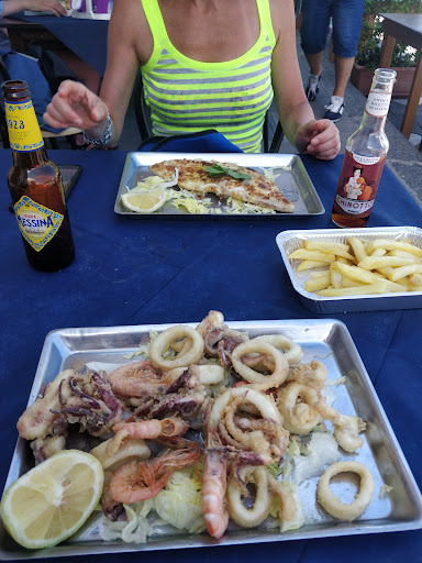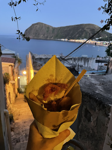 Read moreDifficilmente sono così cattivo con le recensioni, ma mi sento in dovere di abbassare la media di recensioni di questo locale. Mi risulta alquanto inspiegabile che sia così ben recensito, mi sorge il dubbio che le recensioni se le siano fatte da soli. Pranzo per tre e tre fritture miste, con calamari(?), gamberi e perché no, anche patatine fritte; gli anelli di calamari erano enormi, ciò mi fa pensare che più che calamari fossero totani…Totani, alle isole eolie? E già da qui ho capito che il pesce utilizzato è rigorosamente Surgelato. La frittura costa 30 euro a testa, praticamente il prezzo di un ristorante di alta classe, se non fosse che il locale è squallido e marcato su Tripadvisor con un solo €. Al pagamento non abbiamo ricevuto alcuna ricevuta, ma solo richiesta di uno dei camerieri (tra l’altro con una preparazione pessima) di lasciargli...