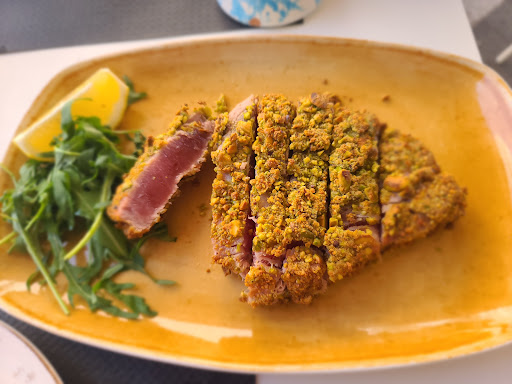 Read moreWe had a relatively short stop here while on an Aeolian Islands tour. I had scouted this place beforehand and was very curious about the pistachio crusted tuna. I also know the swordfish is excellent in this region so I also ordered the caponata. Both were out of this world. The caponata was incredible. The mix of regional flavours was like a trip through history. The eggplant, tomatoes, raisins and spices were almost shocking as Sicilian food has such a wide range of influences. The tuna was also very good- but under seasoned. It could have used a little salt to pull the flavors forward but one experiences the local customs and this wasn't a part of the tradition. The pistachio crust was very crispy and flavorful but I'm pretty sure some shells made it into the crust. The service was excellent despite the fact that communication was a bit of a challenge in English but this didn't take anything away from the experience. I needed a one hour walk to burn it off and feel better as the portions were generous. Make sure you try this place if you are...
