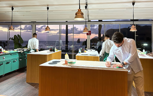 Like everyone else says, the seating is just awful. They sit you on beanbags on uneven ground. Several members at our table were constantly falling down because they're impossible to sit on. I guess it's a fun idea, but not well executed. The view is beautiful, of course, and the resort is wonderful.