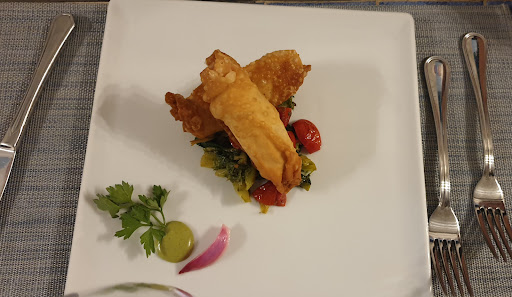 Nel complesso il ristorante non è eccellente, nonostante la stella Michelin, ci hanno trovato un tavolo subito nonostante fosse domenica sera senza prenotazione, abbiamo ordinato senza problemi ma essendo in 4 con una persona con problemi di stomaco ha dovuto prendere solo un piatto perché non era possibile togliere alcuni ingredienti da altre pietanze, ma comunque fin lì tutto bene; Arrivati gli antipasti eravamo molto contenti perché erano impiattati alla perfezione con un sapore oltre le aspettative, soprattutto il Mosaico che aveva vari assaggi di quello che c'era nel menù degli antipasti, un piatto fatto alla perfezione, io ho preso un Cruditeé che per 20 Euro mi aspettavo fosse un po' più ricco oltre Tartare, Gambero e 2 Mazzancolle ma ci posso anche stare dato comunque la qualità del pesce, il Cannolo salato era ripieno e purtroppo non ricordo benissimo quello che c'era dentro ma sicuramente dalla faccia della mia amica era buono; Arrivata la volta dei Primi e dei Secondi (portati assieme) ci portano 2 Calici di Vino senza nemmeno dirci provenienza e nome del vino, 2 Gnocchetti Verdi al Totano veramente molto buoni non ho nulla da dire erano perfetti, una Frittura che non era eccellente nonostante la povertà del piatto e la "Tagliata di Manzo", arrivata quest'ultima rimaniamo spiazzati, la tagliata di manzo che arriva stracotta, tagliata, impilata e con un brodino che mi dispiace dire assomigliava a del cibo per gatti, subito rimandata indietro e senza nemmeno chiedercelo ne mandano in cottura un'altra nonostante noi altri 3 avessimo finito i primi da un pezzo, nel frattempo ci portano del pane chiuso in bustina di carta della mattina, anche un po' duro, a quel punto chiediamo il conto e veniamo a sapere che c'era la tagliata in cottura ma avvertiamo e informiamo il cameriere di non volerla più, paghiamo il conto e ce ne andiamo con una persona, che venuta in un ristorante con una stella Michelin, non ha mangiato, assolutamente un utopia anche nella trattoria più scarsa d'Italia, mi dispiace si siano persi in questa tagliata perché per il resto era veramente ottimo. P.S. Mi scuso per la foto sfocata della tagliata ma eravamo veramente...