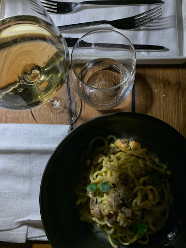 Ambiente grazioso e personale gentile ma francamente a qualità di cibo deludente. Il calice di vino era evidentemente di una bottiglia aperta da più di una settimana. Sono siciliana e mi diletto di cucina, ho anche mangiato più volte in ristoranti stellati e di cibo, modestie a parte, ne capisco qualcosa. La tartare di salmone del tris non era tanto diversa da quella di un ayce con salmone all’ingrosso; si salvavano le altre due ma per l’abbinamento con le salse all’arancia e alle erbe (buona il branzino, media il tonno). Il polpo non era assolutamente un polpo fresco ma conservato (e non indicato): ne comprai uno all’esselunga che feci grigliato con identica consistenza e sapore; la crema di broccolo era buona ma nulla di particolare. La norma assolutamente bocciata: i pomodorini non erano confit ma semplicissimo pelato a pezzi con la polpa (scondita), il pesce spada era secco, la crema di melanzane era assoluta sproporzionata rispetto ai paccheri (scotti) ed era evidente dall’amarezza che le melanzane non erano state trattate prima; mancava inoltre di qualche aroma, per esempio la mentuccia, che esaltasse e legasse un poco i sapori… sostanzialmente un mappazzone. Prezzo sproporzionato rispetto alla qualità degli ingredienti (22€ una norma almeno il pesce spada DEVE essere buono). Avevo visto bei piatti e dalle recensioni sembrava meglio… sicuramente...