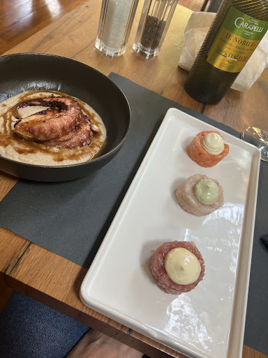 Read moreLocation molto ben realizzata nel centro del paese; accoglienza estremamente cortese, arredi interni accattivanti con le postazioni correttamente distanziate. Personale gentile, cordiale e predisposto all'attenzione verso il cliente: i suggerimenti, anche se non richiesti, molto apprezzati. La cena: fantastica, poche volte abbiamo mangiato pesce crudo così buono!!!! La presentazione è stata eccezionale, rispondendo appieno alle nostre aspettative tanto era fresco e preparato con sapienza nell"accostamento con le saline servite. Le variazioni su piatti storici come tonno e polpo, hanno soddisfatto organoletticamente le nostre papille gustative. Il prezzo pagato ha lasciato un buon ricordo nella nostra memoria. Da tornare per continuare i test sul...