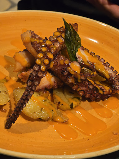 Read moreWe booked a dinner at 9. Arrived punctually. Then waited 40 minutes to get a sit. the staff behaved like it was sth normal. Once sitted, waited another 15 minutes for waiting staff to come. It was very hot inside as the grilled is placed in the dining area and no drinks were offered. The manager of the place that was also a waiter( the place is heavily understaffed) had an attitude and wasnât helpful. Menu is written in the font that is not readable. Drinks are not on the menu and when I asked if they offered drinks, the manager/waiter sounded offended. We ordered octopus for started which was gummy and tasted terrible. Luckily it came with the water, so octopus was possible to swallowâŚ. Bdw water might be the best thing this place has to offer (photo attached). The gnocchi that came after and the fish were decent, thus two stars, not one. However, the Michelin start for this place should be...