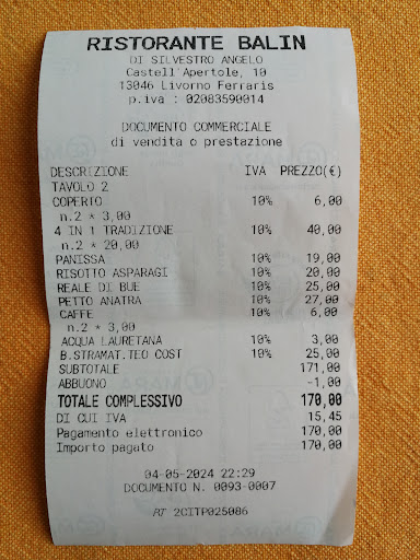 Read moreNelle ultime settimane sono stato due volte da Balin, per un pranzo tra amici, alla ricerca della bottiglia perfetta, e per una romantica cena a due per un anniversario. Mangiare da Balin è un susseguirsi di emozioni, come un ritorno a casa o un primo appuntamento. Bruno Lauzi diceva: Ed è così davvero. Accolti con calore da Francesca, siamo entrati in un paradiso di lavanda e bottiglie di vino, riso e pentole di rame, guidati verso un tavolo ben apparecchiato e discreto. La quiete domestica viene rotta da una piccola entrée di benvenuto che lascia spiazzati: un cappuccino di funghi con un cornetto salato! Il menù spazia dai capisaldi della cucina piemontese ad accostamenti più intriganti ed arditi, con alcuni punti irrinunciabili come i famosi antipasti o la "sua" Panissa, di cui Balin è maestro. Scegliere un vino non è semplice, scorrendo la carta si trovano pagine e pagine di bottiglie che hanno fatto la storia del Piemonte... o di ciò che c'è fuori dalla nostra regione, tra chicche altoatesine e qualche perla straniera. Tra i miei assaggi, per antipasto uno scrigno di sfoglia ripieno di funghi, gamberetti, seppioline e fiordilatte, a seguire riso e rane, ormai una rarità anche qui nel Vercellese, e per chiudere un baccalà croccante con peperoni arrosto e concassè di pomodori, su vellutata di piselli alla menta. Come dolci, si può partire da una teoria di nocciola Piemonte per finire a Bronte con i pistacchi salati in semifreddo, tra bicchieri di passito e di Barolo chinato. È un momento di coccole che bisogna concedersi, sedersi al tavolo e godere della totale dedizione che Anna, Angelo e Francesca hanno verso i clienti. Mi...