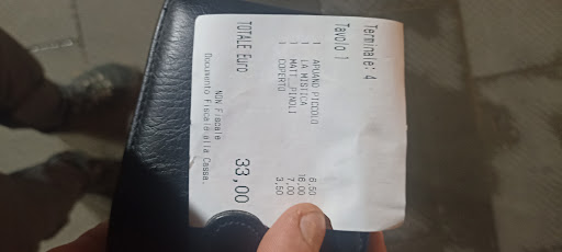 Raramente lascio commenti negativi per il cibo o il servizio, ma lo faccio per questo posto perché mi sento tradito. Prima di tutto, la pizza era buona... ad alcune persone potrebbe non piacere l'impasto, ma a me piace moltissimo. Io ho mangiato la pizza la mistica che costa 12 euro, secondo menù. Insieme alla pizza ho bevuto una birra (0,33l) e come dessert la Panna Cotta. Posso dire che sono rimasto spiacevolmente sorpreso quando il conto totale è stato di 34 euro. Per questo motivo ho chiesto la ricevuta dopo aver pagato (non l'ho ricevuta in primo luogo). Quando ho lasciato il posto, ho controllato cosa c'era scritto sopra e, sorprendentemente, erano 33 euro, non 34 come mi era stato detto inizialmente. Inoltre la pizza la mistica costava 16 euro anziché 12. Perché? Inoltre mi sono stati addebitati 3,5 euro per "Coperto". Capisco che questo sia per sedersi a tavola, posate e un po' di pane con olio o qualcosa del genere, ma non ottengo niente di tutto ciò tranne che sedersi a tavola con le posate. Questo addebito non ha senso e dovrebbe essere la volontà del cliente se vuole lasciare la mancia o meno (se questo addebito lo sostituisce in...