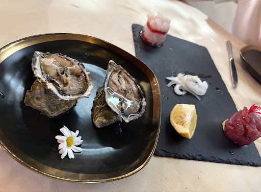 The food is truly excellent. You can tell it’s made by someone who really knows how to cook. I had the best octopus dish I’ve ever tasted here. The seafood platter was so delicious that we almost licked our fingers clean! The clams and oysters were absolutely divine. For dessert, we had yogurt and olive oil gelato, which was simply exquisite.