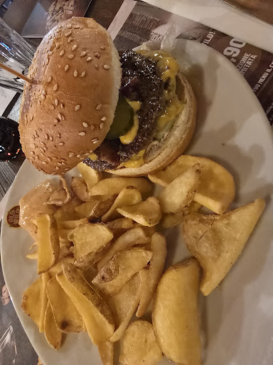 Premetto che non amo i fast food:sono approdata qui solo per necessità di orario..Arrivata alle 14,40 ,non sapevo fossero prossimi alla chiusura,quindi la cameriera magari ,a giusta ragione era anche un po' scocciata ;io in compagnia di mia figlia e delle mie due nipotine affamate.Mi ha avvertito che avrei avuto poco tempo per scegliere perché avrebbe preso subito le ordinazioni,detto fatto,ordiniamo al volo senza nessun suggerimento ..(ho appreso da mia sorella a casa che esistono i menù).Ordino due hamburger Dakota (svizzera ,formaggio bacon che sembrava lesso) accompagnati da abbondanti patatine,una cotoletta tre lattine ,una birra un piatto di nachos ed infine una bimba vuole un dolcino.Vado a pagare..63€ e spiccioli do'un'occhiata veloce ,vedo che la birra alla spina l'ho pagata €5,40..ad esempio.Dico.la verità ho pensato che fossero i soldi più mal spesi di sempre.Mi assumo.la responsabilità di non aver letto bene il menù, ma rimane il fatto che ho pagato 8,40€ a panino ,ed era insipido ,povero di formaggio,rinsecchito...Comunque locale arredato in.maniera carina e particolareggiata che vale da solo le due stelle .Servizio al tavolo, che se non erro costa 1,60 il personale che ci lavora giovane ,qualcuno veramente gentile ed affabile altri indolenti e sembra che ti facciano un favore.Io non lo consiglio ;x la stessa qualità di cibo, ci sono altri fast food dove avrei speso un terzo.(Consiglio se puntano alla fidelizzazione del cliente, più cortesia e di consigliare soluzioni economiche...