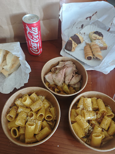 Read moreIl locale si presenta come una gastronomia, con una proposta di piatti pronti. Noi abbiamo mangiato due piatti di pasta, carbonara e cacio e pepe, molto buoni, sugo abbondante, tale da condire bene la pasta e permettere di fare la scarpetta con della schiacciata molto buona offerta gentilmente dai proprietari. Un piatto di pasta normale costa 6 euro, con pasta fresca 8 euro. Ci sono 3 tavolini da 2 persone all'interno e due tavolini all'esterno. Il bagno ampio, nuovo e ben pulito. Ottimo per un pranzo rapido, gustoso e semplice. Disponibile anche...