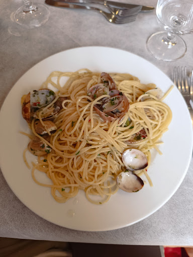 Tutti i tagliolini all'astice erano freddi, con un sugo un po' dolciastro. Gli spaghetti alle vongole erano buoni, anche se tiepidi e con una quantità d'aglio non indifferente. A livello di sapore, comunque, tra i migliori che ho mangiato a Livorno, città di mare dove è incredibilmente difficile trovare un posto dove si mangi pesce decentemente (dopo 40 anni, non ho ancora trovato un posto dove posso dire di aver mangiato veramente bene). L'orata al forno era buona. I gamberoni erano saporiti, ma non puliti. Il fritto misto non era male. La grigliata mista era un po' fredda. I dolci erano buoni, ma mancavano molte cose perché finite, grazie ai "voraci generatori di smog".