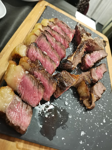 Read moreRiusciti a trovare l'ultimo posto disponibile per cena, ci rechiamo con un minimo di amticipo(un po' per educazione, soprattutto per fame) per avere a disposizione del tempo in più per scegliere i jolly dal menù. Ci vengono subito offerte 2 graditissime polpette cadauno, a base di carne bianca e besciamella Poi il menù ci viene spiegato nelle parti a noi più oscure e la scelta cade su 2 antipasti: 1 misto patanegra e cinta, e 1 con affettati misti(comprensivo di un assaggio di formaggio erborinato, roba da fine del mondo) A seguire, una sashi finlandese da 1kg(ci hanno fornito pure lo scontrino del peso). Ci viene spiegato della particolarità del tipo di carne, che effettivamente, a parte la sua bontà e tenerezza, ha una componente grassa importante ma morbida e saporitissima. Tutto innaffiato con 3 calici di rosso di Bolgheri. Per dolce e caffè, non c'era più posto. Il prezzo è stato in linea con quanto mi aspettavo e ne siamo usciti soddisfatti. Al momento, miglior posto dove abbiamo...