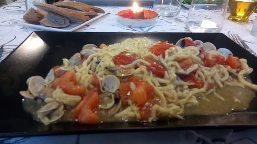 Read moreRistorante situato in un vicolo tranquillo nel centro di Loano. Prima volta che venivamo, ci hanno fatto accomodare in tre anche senza prenotazione, dopo aver chiesto conferma in cucina. Abbiamo scelto tre primi ed un antipasto da dividere nell'attesa: gamberi avvolti nella pancetta, buoni e particolari. Purtroppo il servizio non è stato davvero all'altezza: prima uno scambio (inconsapevole) di un primo con un altro tavolo e poi un'attesa di quasi 30 minuti per le rimanenti comande hanno rovinato le aspettative che avevamo su questo locale (scelto in base agli altri commenti). Abbiamo dovuto rifare l'ordine e ci è stato detto che c'era un problema di personale mancante, e lo posso capire, ma se la proprietaria ha accettato di servire persone evidentemente oltre la capacità del locale, questo non deve andare ad incidere sulla qualità del servizio. I due piatti di pasta (quando sono finalmente arrivati) erano buoni, ma non "speciali" come speravamo. Il prezzo finale di circa 30€ a testa risente anche del costo non basso del vino sfuso (8€ per mezzo litro) e dei 2,5€ di coperto (per i quali mi sarei aspettato almeno tovaglie e tovaglioli di stoffa...). Insomma: una cena discreta, un servizio pessimo ed un conto finale non economico.