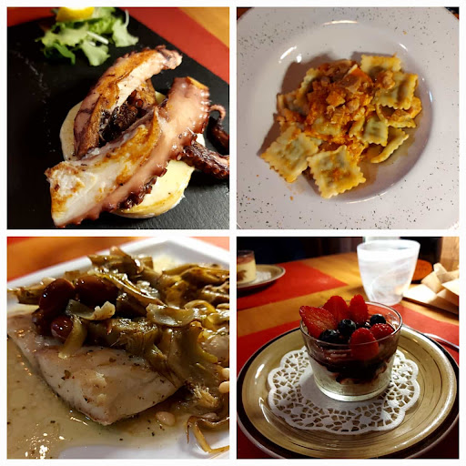 Read moreOttima esperienza gastronomica in pieno centro! Spinti dalle recensioni positive abbiamo cenato in questo ristorante caratteristico e ne siamo rimasti tutti entusiasti. Il polpo croccante con tomino può fare storcere in naso all'inizio, ma dopo il primo boccone si capisce il perché dell'accostamento: la consistenza soffice dell'interno del polpo si scioglie ed unisce a quella del cuore del tomino mentre la parte esterna del polpo conferisce una piacevole croccantezza. Il fritto era superlativo, pesce freschissimo, olio di qualità e frittura croccante e leggera con le alici per niente secche ma belle carnose. Piccola delusione per i tagliolini al nero di seppia: vongole fresche e gustose, buon accoppiamento con zucchine trombetta ma al piatto mancava una marcia in più. Peccato, altrimenti...