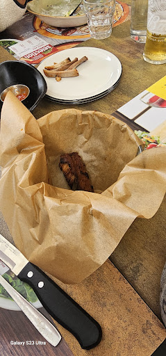Read moreMi sono recata da Roadhouse con i miei due figli, ci siano accomodati all'esterno. Prima di assegnarci il tavolo ci hanno comunicato che la sala esterna era piena di api, ma nessuno si è scomodato di fare spostare i cestini dell'immondizia posizionati prima dell'inizio della sala. È di per sé fastidioso mangiare con l'immondizia a meno di un metro, peggio ancora se attira insetti. Dopo un'ora di attesa i miei ragazzi hanno ricevuto una grigliata composta da due filetti di pollo secchi e amarissimi perché cotti in una brace sporchissima, due salsicce che sapevano solo di spezie e due filetti di coppa che puzzavano. Io ho ordinato una tagliata da 200gr, avevo chiesto che fosse al sangue, insomma, più cruda che cotta. Queste erano state le raccomandazioni. Mi hanno servito una mini bistecca immangiabile perché durà e piena di nervetti. Nessuno dei tre ha mangiato nulla. Alla cassa ho fatto presente quanto accaduto con infinito garbo, a poco è servito. La cassiera mi ha risposto in malo modo senza nemmeno preoccuparsi di controllare ciò che era rimasto nei piatti. Nessuna cura per il cibo ne per i clienti. Non tornerò mai più in questo posto che sconsiglio vivamente a tutti coloro che vogliono...