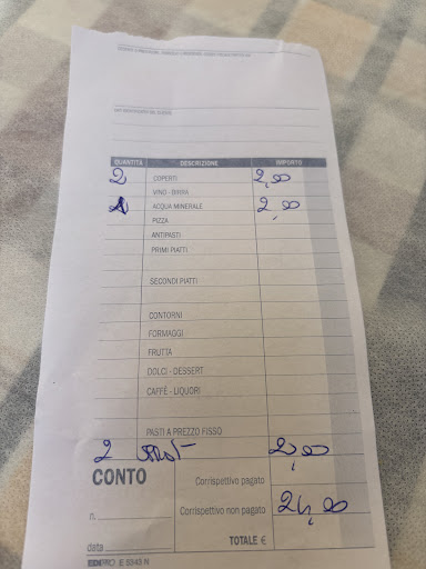 All fine until we asked for the bill. First the lady brought us a bill of just 24 euro’s without any specifications. She probably saw on my face I did not like this. She came with a written bill (see photo below). 20 fkn euro’s for 2 aperol spritz in the south of Italy! We’ve been here for a while and even on the most touristy places this only costs 7-8 euro’s. They also billed us 2 euro’s coperto (eventhough we did not eat anything, but ok no problem with this).