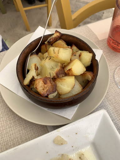 The lady was very unfriendly and impertinent. Upon entering, the only word was "due?" (two) because we were two persons. When she waited our table she started impatiently ticking her blocknote, because we didn't decide quickly enough The table cloth was wet. When we said something about it, she ignored it The translation of the menu was poor The potatoes were not well done and way too fat The bread was days old and dry like the desert The wine was mediocre, like all of the other food She never asked if everything was ok or we needed anything. When removing the plates, she threw the napkin from the plate back on the table She was reading her WhatsApp wile checking out Everything was way too expensive