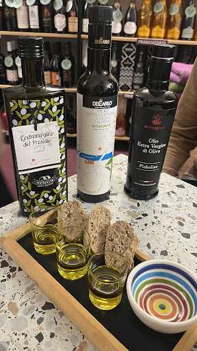 Very lovely place that offers a local tasting experience for wine or olive oil! I had never tried an olive oil tasting place and it was a very nice experience. The lady explained everything and how to do the tasting since it was our first time, she was very kind. All 3 selection tasted very nice. They are served with bread. We learned a lot about olive oils from her explanation :) The wine selection seems very nice too which you can see in all 2 walls inside where you are sitting. It was a very rainy day and we were randomly walking around, we ended up seeing this place and I am so glad to have found this gem! Since it was cold outside, I was also very happy to see that they had a very good selection of tea from Dammann. I attach the explanation of the olive oil selection and the ambiance. I definitely recommend it! The prices are very...