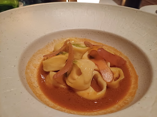 Premetto che non sono amante della cucina cinese e nemmeno di quella fusion, pertanto il mio giudizio non potrà essere più di tanto aderente alle mie esigenze. L'ambiente è moderno, un po' troppo lugubre per i miei gusti, ma arredato bene e accogliente, diciamo tipico cinese di alta qualità. Mi è piaciuto il piatto di tagliolini al maialino iberico, il resto, a parte il gambero fritto, l'ho trovato senza una grande personalità, devo dire scarso di sapore, però ci sta per questa tipologia di preparazione. Devo dire un plauso al personale gentile educato e molto preparato anche nei consigli, però devo dire che mi ha infastidito il continuo passare a versare nei tre bicchieri dei commensali lo champagne, l'ho trovato veramente troppo invasivo ed inutile anche se lo avevamo detto. Secondariamente il prezzo, non mi permetto di contestarlo, per carità, la preparazione sicuramente complicata, ma poi di 100 euro a testa, personalmente per le mie aspettative l'ho trovato decisamente poco allineato, ma ripeto va bene. Consiglio, lasciate un po' più di autonomia ai commensali, personalmente mi rende un po' ansioso vedermi passare di continuo qualcuno a riempirmi il bicchiere o portare piattini avanti ed...