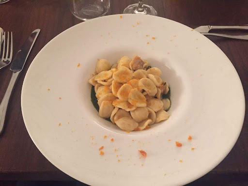 Read moreUn ristorante di alto livello, che offre però piatti studiati ma semplici, che anche chi non ama la cucina troppo "pasticciata" è in grado di capire e apprezzare. La tartare con caviale e nocciole, servita sull'osso di manzo, da gustare assieme al midollo, mi ha piacevolmente stupito. Però, nel menù, invece di "caviale", avrei scritto "caviale rosso", perché leggendo "caviale", ci si aspettano le uova nere dello storione e non quelle rosse del salmone. I tagliolini 30 tuorli sono veramente speciali, ma a mio parere, non pienamente valorizzati dal ragù bianco di pesce, troppo delicato. Buone le due mousse al cioccolato; un po' meno la tartelletta. Il servizio è molto buono e c'è una gran cura del dettaglio, a partire dai bicchieri, con inciso il nome del ristorante. Molto apprezzati la polpettina offerta all'inizio del pasto e il croccante prima del caffè. I prezzi sono nella media per questo livello...