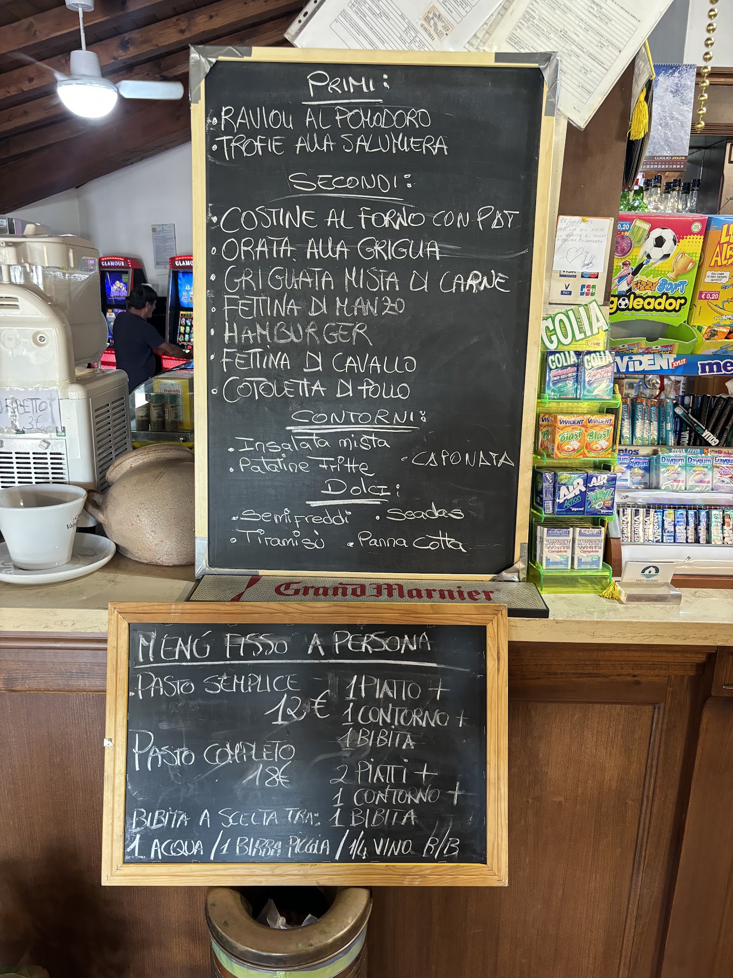 Read moreAmazing lunch - they have 2 options: 1 menu for 12€ (main, side, drink) or for 18€ (2 main, side, drink). There is a list of primi and secondi plates to choose from. Drinks can be water, small beer or 1/4L wine. We ordered ravioli and grilled fish (sea bream), fries, salad, wine and water (1L). It cost 24€. Pizza is not available for lunch. Very good local food. The locals also dine here. Service is a bit slow and confusing. They don’t speak English well. But great...