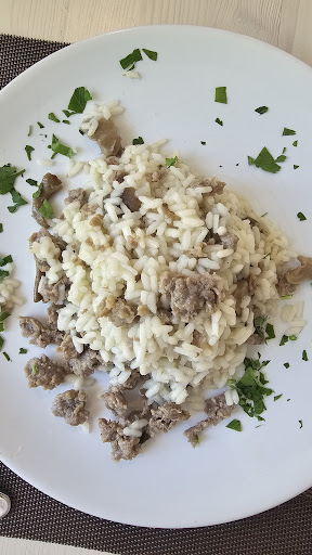 Dopo 20 minuti circa arrivano le ordinazioni,e subito mi stupisco della tagliata,qualificabile in numero 9 (nove!) straccetti di carne,lunghi 4 centimetri,e larghi mezzo centimetro,stracotti e duri da masticare,messi incrociati,sopra a una montagnetta di rucola,come a dimostrare che la quantità sia maggiore.(la vedo come una presa per i fondelli,visto che la tagliata costa 13,50€)