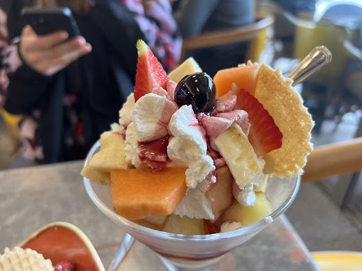 Purtroppo non rispetta le aspettative. 20minuti prima di poter ordinare, chiedo una coppa tartufo con determinati gusti e dopo qualche minuto torna dicendo che non fosse possibile fare variazioni sulla coppa tartufo, quindi chiedo un altra coppa con i gusti con cui volevo il tartufo.. gelato nella coppa già parzialmente sciolto e guarnizione non consona dato che la panna stava cadendo di lato e la granella era per lo più sul gelato che non sulla panna. (Ho fatto 5 stagioni di gelateria in Germania e di queste cose me ne intendo un pochino). A tavola ci cade la coppa al che chiediamo se ci potessero dare un qualcosa per sistemare e la unica domanda è stata 'avete rotto la coppa?' (che per fortuna non si era rotta). Di conseguenza son dovuto andar in bagno a lavarmi e cercar l'impossibile per poi trovare una sorpresa alla casa con una maggiorazione di quasi un euro (non so se fosse riferito alle variazioni o al fatto di aver sporcato col gelato). In compenso il gelato era davvero buono ma se dovessi tornare credo consumero...