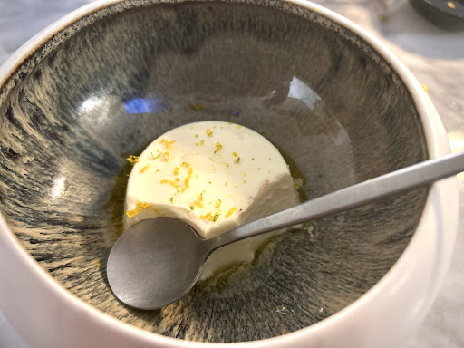 E infine, la Panna Cotta. Ma non una qualunque: un piccolo sogno cremoso, accarezzato da minuscoli frammenti di agrumi canditi e un soffio dâolio al basilico â un bacio dâestate in ogni cucchiaiata.