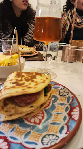 Read moreSerata da dimenticare. Sabato sera , arriviamo ed il nostro tavolo prenotato all'interno, si trova esattamente sotto le scale a chiocciola che portano al soppalco!! Optiamo per un tavolo fuori.. Ordiniamo da bere e poi sfogliamo il menù, io essendo vegetariana cerco se vi sono indicazioni sugli ingredienti delle piadine e se eventualmente è previsto un impasto, nel caso la piadina contenesse strutto, per i vegetariani. Non trovando né l'uno né l'altro suppongo che sia una piadina adatta anche a noi veg. Viene il ragazzo a prendere le ordinazioni e scopro con delusione che la mia supposizione era errata: le piadine sono tutte con lo strutto senza possibilità di alternative ( mi viene offerto pane in cassetta o piadina senza glutine!!!!!!!). Non mi pare possibile questo considerando che sul menù vengono anche indicate le piadine senza carne!!! Praticamente una presa in giro per i vegetariani!! Essendo con amici provo a vedere se c'è un'alternativa, ovviamente di tipo diverso, e opto per una delle due insalate adatte a me ma mi viene detto che hanno finito gli ingredienti per quella scelta . Provo con i fritti indicati vegetariani ma poco dopo l'ordine la ragazza mi informa che non hanno più neanche quelli!!!! Che fare?? D'accordo con gli altri , paghiamo le nostre bevande e ce ne andiamo. Non voglio commentare ulteriormente visto che l'episodio parla da sé!!!!! Mi dispiace veramente anche perché a quell'ora (20:30) non è poi stato facile trovare un'alternativa!! Amici vegetariani siete...