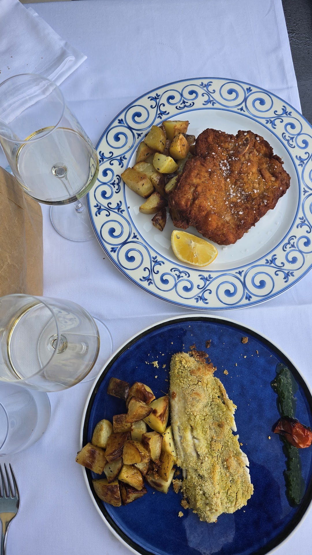 ✔️ Place looks really nice, they gave us table on the terrace (we came at 19h and got the table if we clear it till 21h which I think is very kind and fair). ❌️ Food is simply not good, spices are non-existing, very blend and plain. I was excited for the traditional homey kitchen, but that was just not it. Fish filet (could be better cleaned) and green sauce both had no taste. Also what is written in the menu and what you then get is simply put a real surprise - I mean who fries a veal cutlet? So I was really not surprised every other guest...