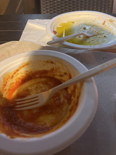 A great family-run gastro streetfood. There are a lot of choices from panninis to pizzas, soups, and traditional plates. We ordered for takeaway and sat on the big stairs just beside to eat because there were no empty tables. We took 2 kinds of meatballs (yummy), fried eggplant, baked potatoes, a piece of lasagna, a bottle of water and one Cocacola. The total was 18,50 €