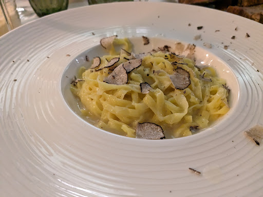 Ordered a primi and a secondi - but given a nice amuse bouche with a complimentary glass of wine, which was a very nice touch. It was the Primi for both my partner and I that let us down a bit. The truffle pasta didn't have the complexity of flavor I normally get from a good truffle (it tasted more single note) and the texture of the pasta itself wasn't quite right. Similarly, my partner's ravioli were okay, but not great, lacking flavor. Neither is a dish we would order again.