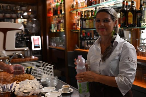 This is a Café with lots of tables outside, overlooking the beautiful Basilica on the Piazza San Michele. So it surely has a great location.