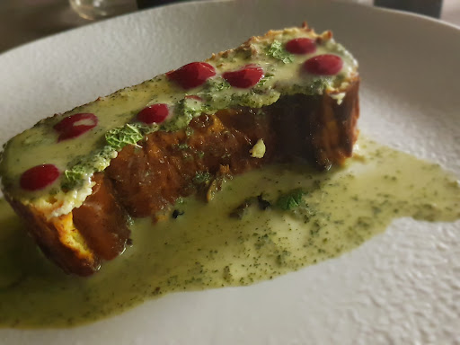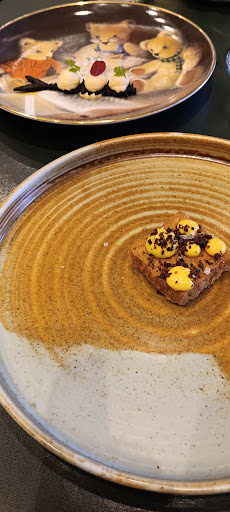 Proseguiamo con la decisione del posto a sedere e si percepisce che: all'interno pecca l'intimità. Ottima la scelta dei mobili, delle sedute e dei colori per l'interno, ma non c'era la 'vivibilità" dello spazio a sedere. Quindi poco spazio tra un tavolo e un altro. Decidiamo quindi di sederci fuori. più aperto, forse più intimo ma più spartano. La vera chicca di questo posto sono i piatti, la creatività di quest'ultimi e la qualità dei prodotti usati. Il pesce pezzo forte del ristorante è lo stesso che ci ha lasciato sbalorditi, sia per gusto che per tenerezza del pesce. Il quantitativo dei piatti può sembrare poco, ma riesce a soddisfare ogni stomaco oltre che il palato. Molto apprezzati i dolci e la loro presentazione.