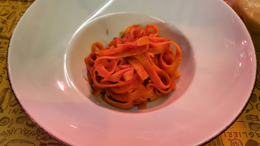 La mia pasta con le zucchine era acida. I prodotti usati non erano freschi, la sera di fatto mi sentii male. Così come altre due persone che mangiarono al tavolo con me. Le centrifughe non erano fatte con verdura fresca e si sentiva. Il personale nonostante i tavoli vuoti vagava per la sala persi nella loro dimensione astratta senza curarsi dei clienti. Ad una certa non vedendo nessuno chiedo ad un tizio se può portarci gentilmente dell’acqua, il genio risponde che per le ordinazioni “c’è la bimba” riferendosi alla cameriera, che alla sua affermazione impallidisce immagino imbarazzata per l’uscita totalmente fuori luogo, non che priva di professionalità. Mi chiedo come si possa essere così squallidi da chiamare così una collega/sottoposta….